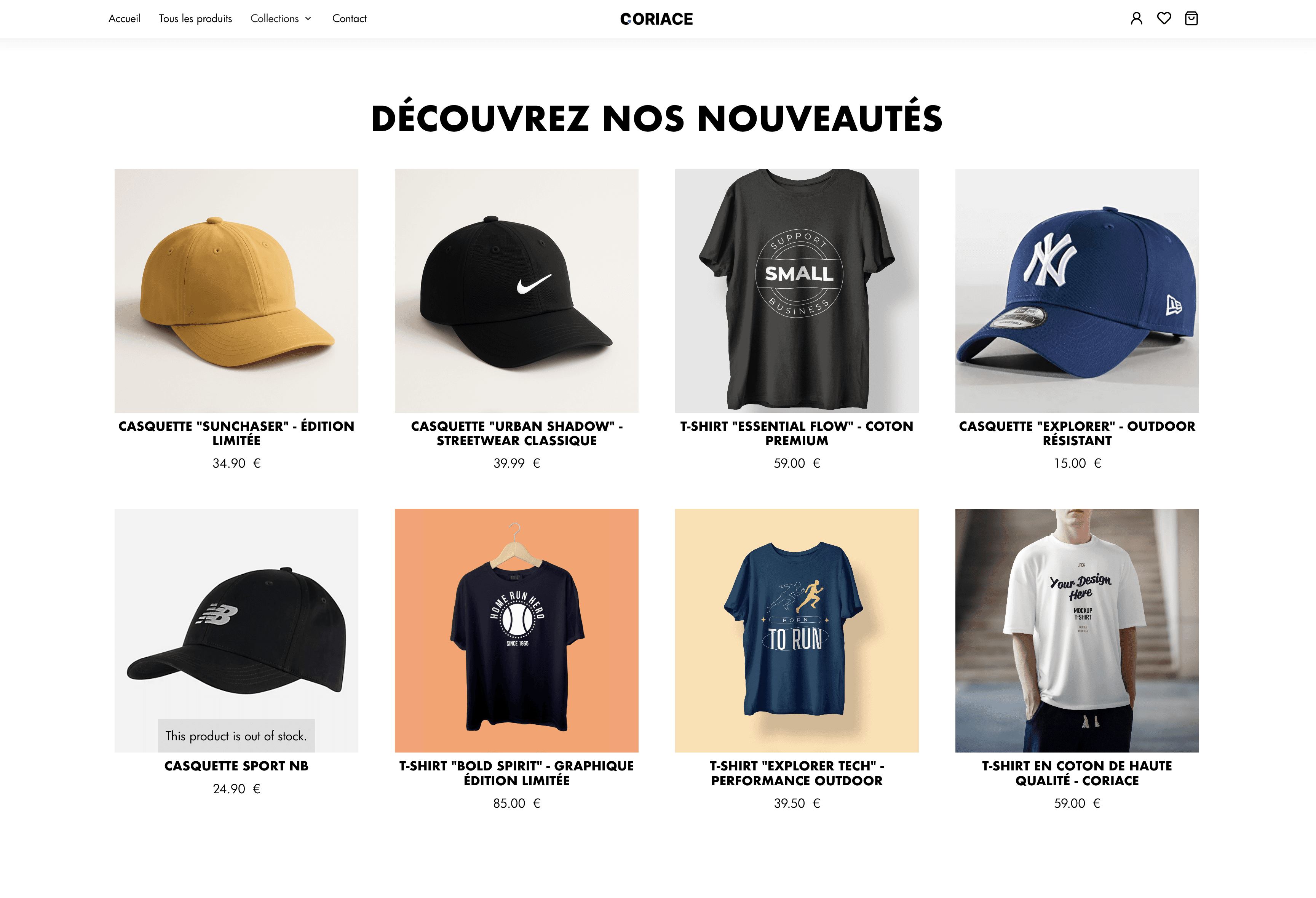 Branding fort, navigation fluide, mobile UX pensée pour l'achat impulsif. Validation avant intégration